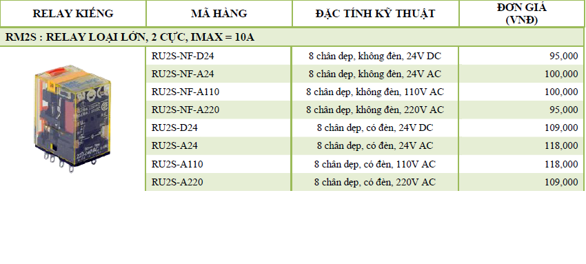 BẢNG CHỌN MÃ HÀNG - RELAY TRUNG GIAN IDEC