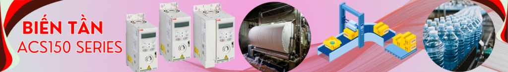 - Dòng biến tần ACS150 tích hợp chiết áp điều khiển tốc độ trên biến tần cùng màn hình LCD.