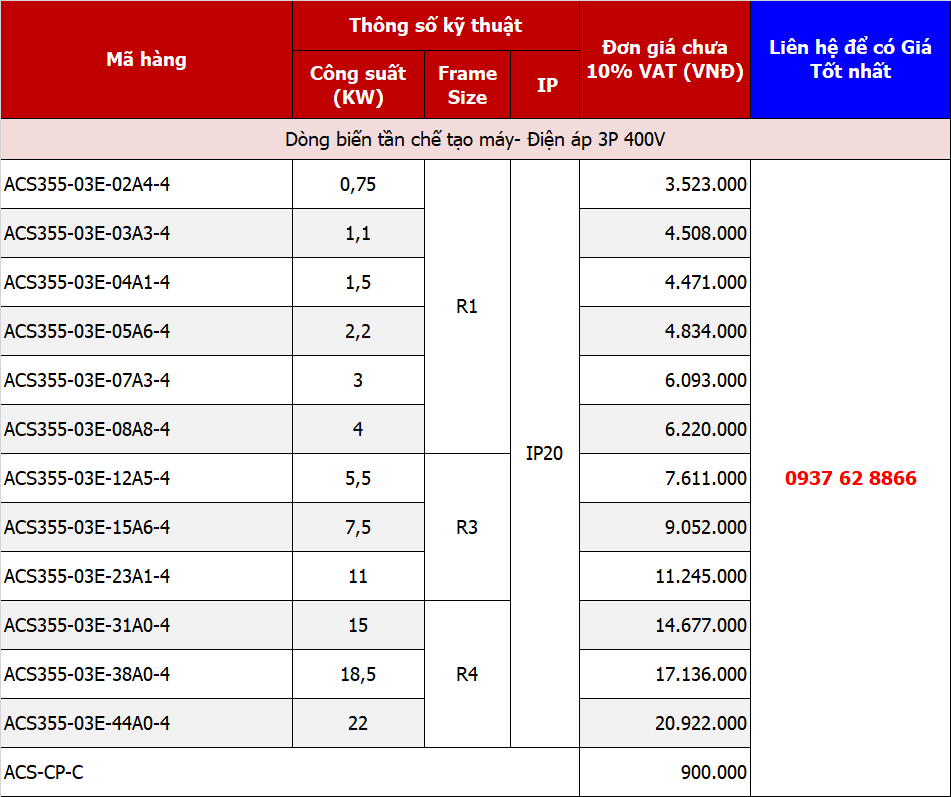 Bảng giá: Bảng Giá Biến tần ABB 2024
