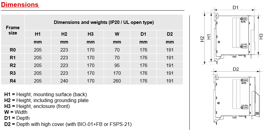 Kích thước Biến tần