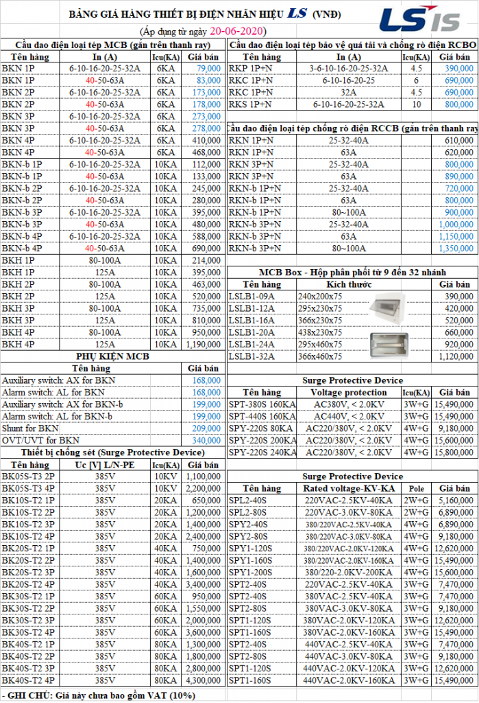 BẢNG CHỌN MÃ HÀNG - APTOMAT GÀI