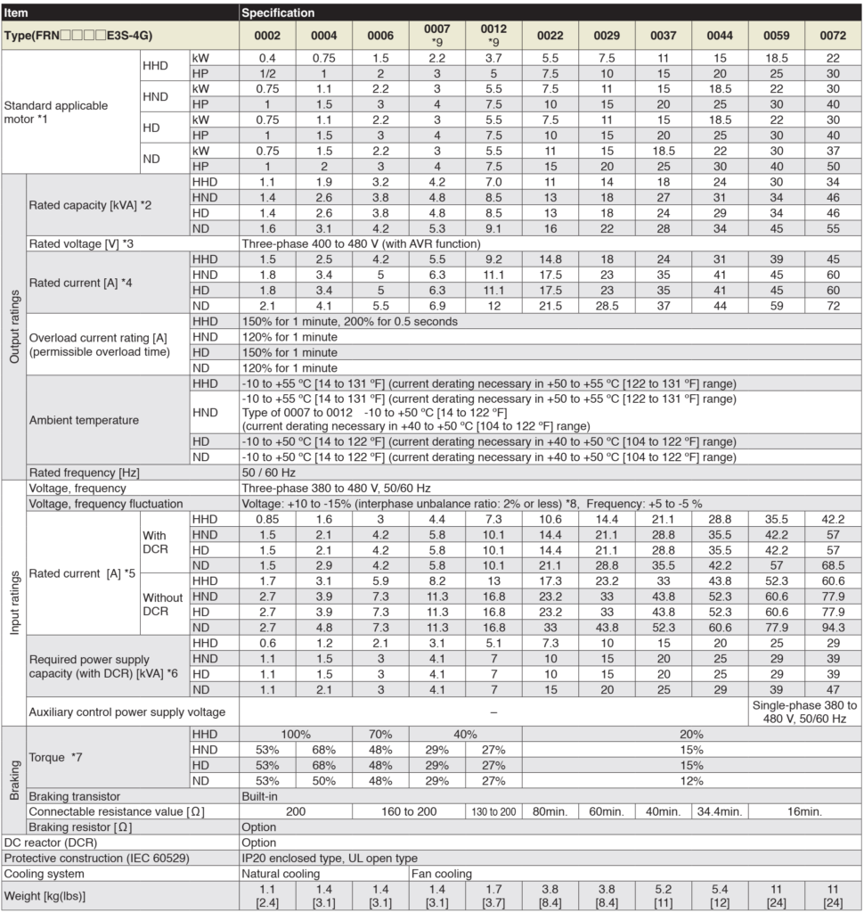 Thông số kỹ thuật chi tiết: Biến tần Fuji ACE E3-380V 22KW FRN0044E3S-4G