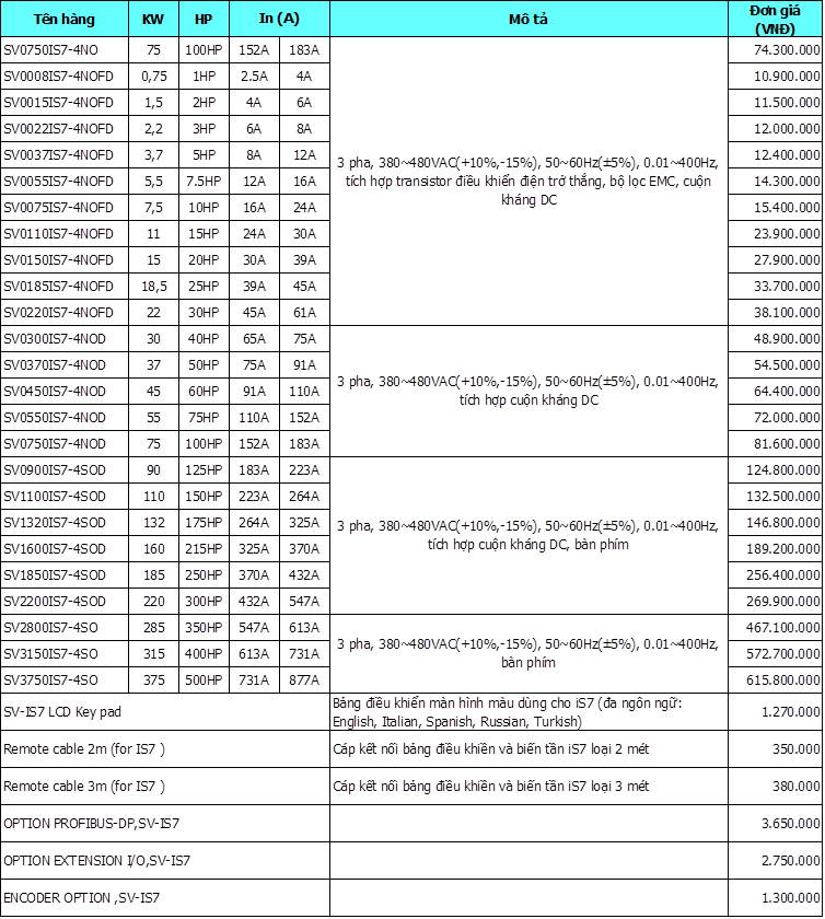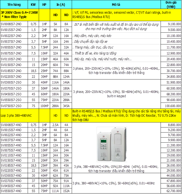 Thông số kỹ thuật Biến tần LS Siêu Khuyến mại 20%