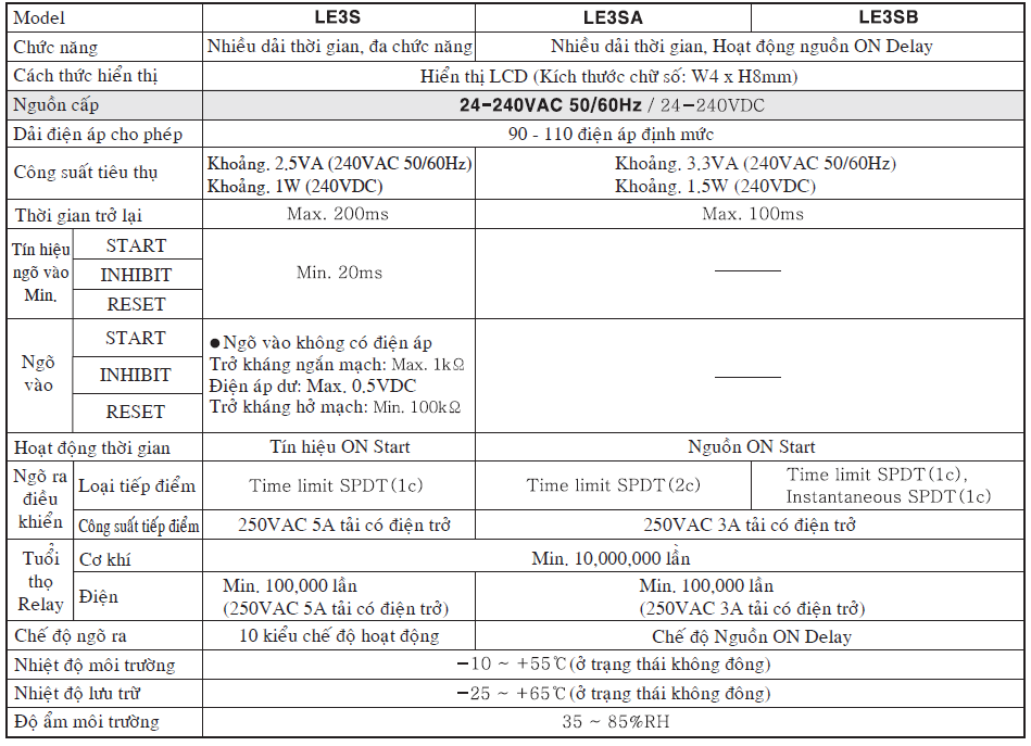 Tiếp điểm ngõ ra: SPDT(1c), 5A/240VAC