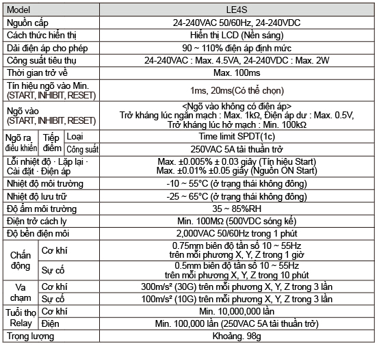 * Dải thời gian có thể định dạng (dải cài đặt thời gian đến 9.999 giây) : Có thể cài đặt 0.001 giây