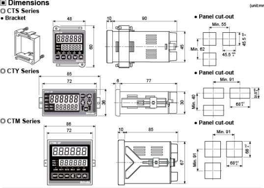 Kích Thước 48×48, hiện thị 4 số, 2 Input NPN/PNP, Out: Relay/ Transistor