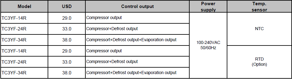 BẢNG CHỌN MÃ HÀNG - Bộ Điều Khiển Nhiệt Độ TC3YF