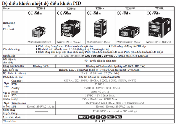 BẢNG CHỌN MÃ HÀNG - Bộ Điều Khiển Nhiệt Độ TZN4L – A4C