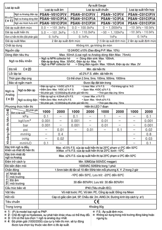 BẢNG CHỌN MÃ HÀNG - CẢM BIẾN ÁP SUẤT