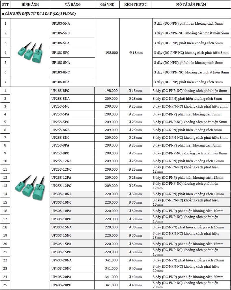 | 3 dây (DC-NPN-NC) khoảng cách phát hiện 5mm |