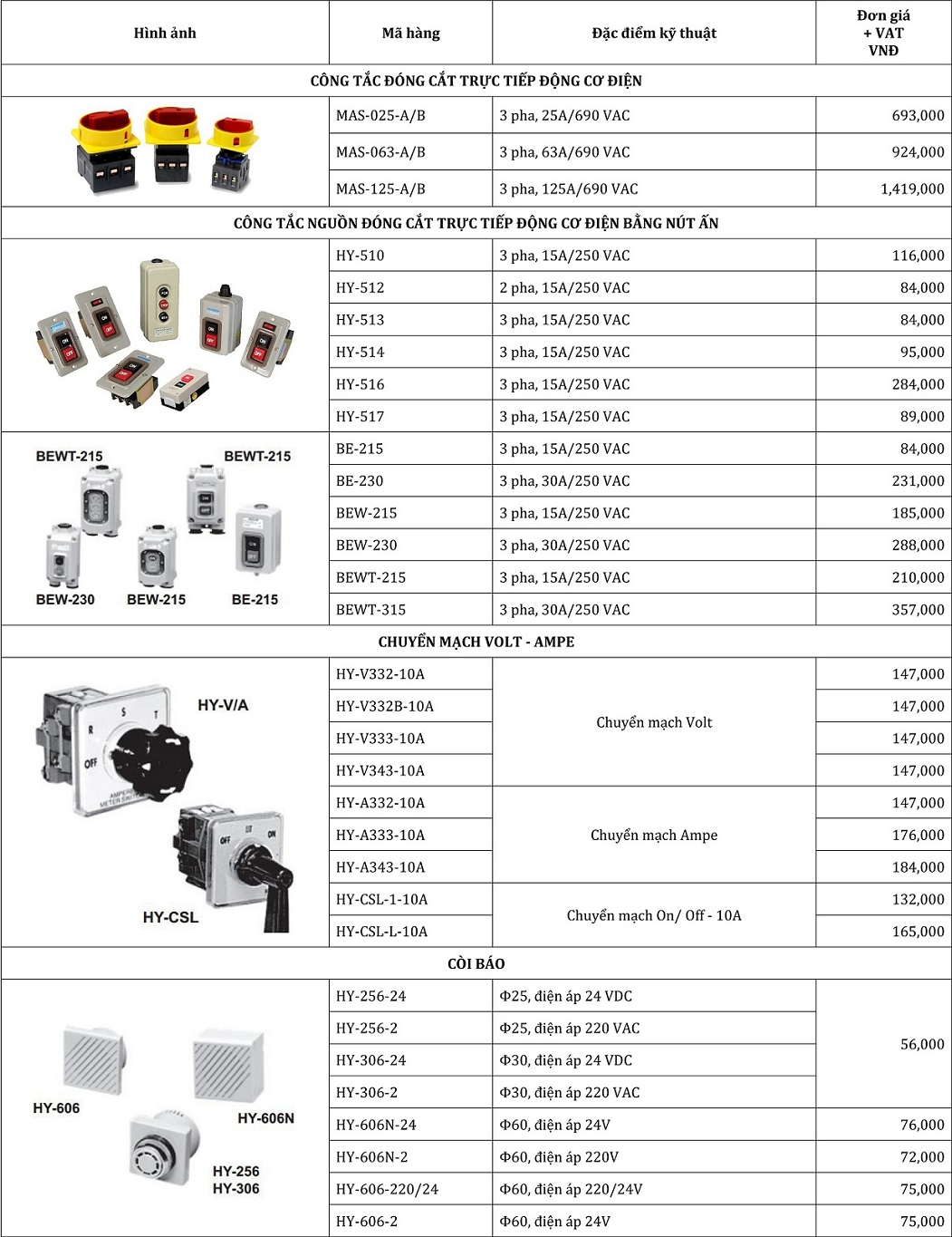 BẢNG CHỌN MÃ HÀNG