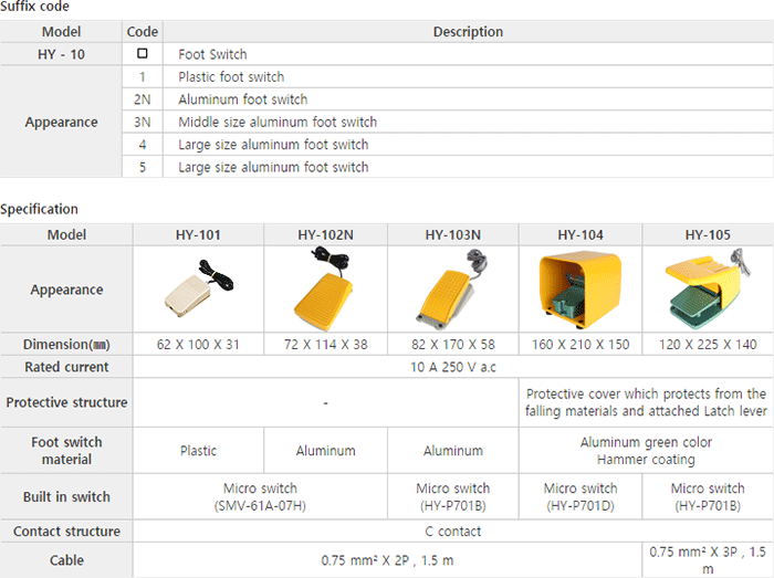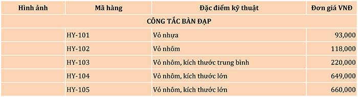 Công tắc bàn đạp HY-105: Vỏ nhôm, kích thước lớn.