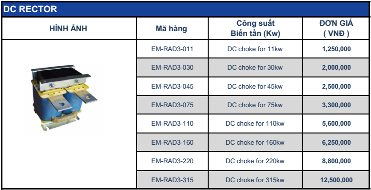 BẢNG CHỌN MÃ HÀNG - DC Reactor Cuộn kháng EM-RAD3-030