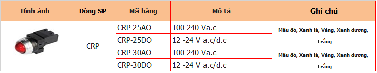 CR-252-AO – ĐÈN BÁO LED Hiện tại đã được thay thế bằng mã Sản phẩm mới ưu việt và mang tính thẩm mỹ cao hơn là Đèn báo LED Φ25: CRP-25A