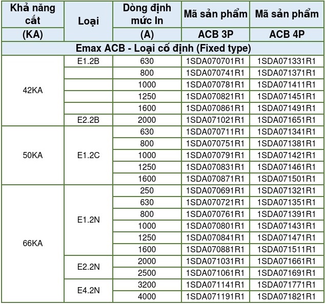 ACB là máy cắt không khí Emax2 loại 3, 4 cực vừa có dạng cố định hoặc di động được sản xuất tại Ý, đáp ứng tiêu chuẩn IEC 60947-2.