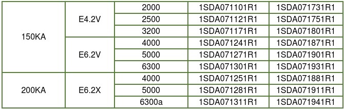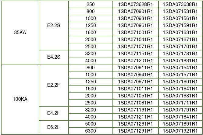 - Dòng cắt ngắn mạch từ 42kA đến 200kA, Icu=100%Ics