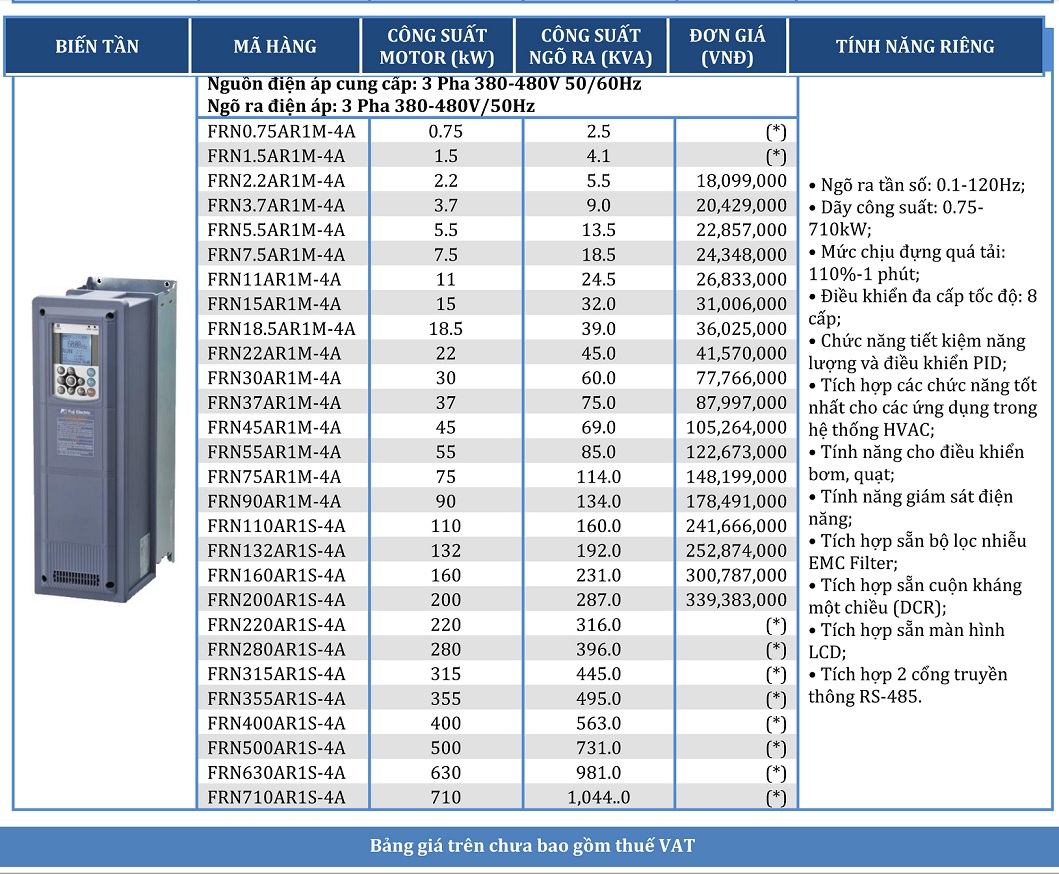 Bảng giá Biến tần FUJI 2020: Bản Full