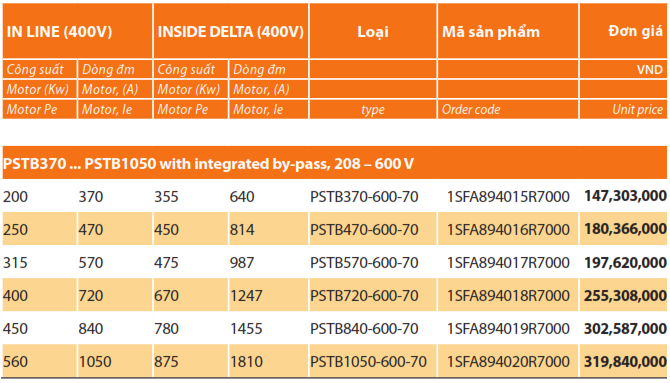 BẢNG CHỌN MÃ HÀNG - KHỞI ĐỘNG MỀM ABB – PSTB