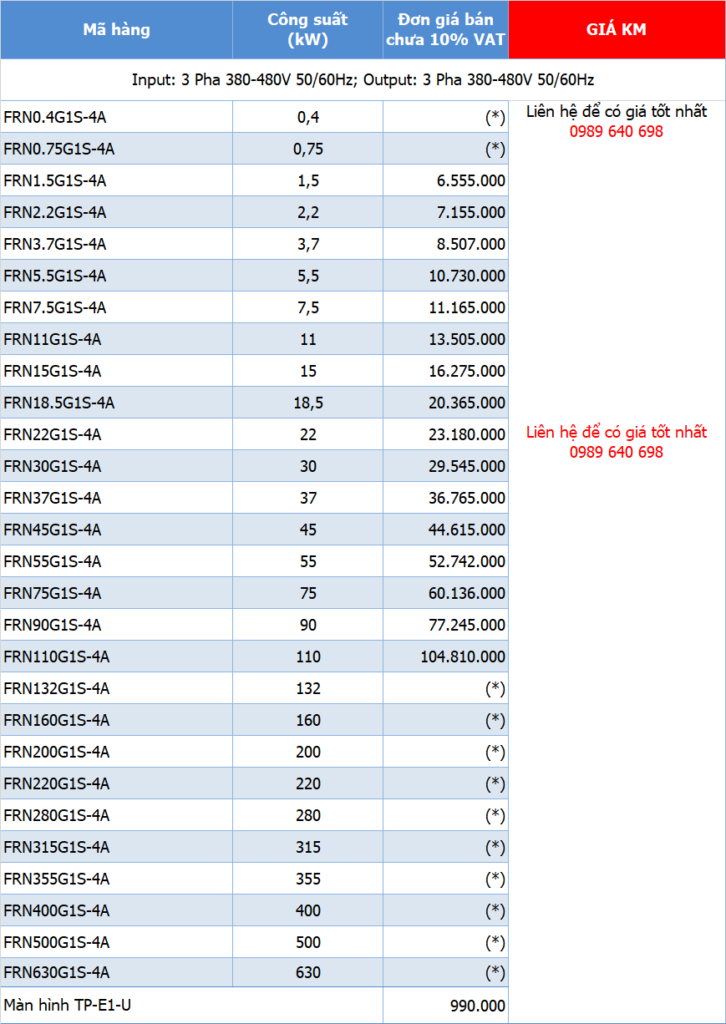 BẢNG CHỌN MÃ HÀNG - BIẾN TẦN FRENIC-MEGA – 3pha 220V 3.7kW FRN3.7G1S-2A