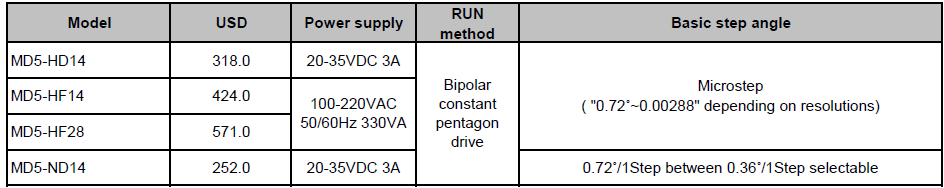 * Bộ điều khiển Motor MD5-HD14 của Autonics hoạt động với tốc độ cao và momen quay lớn, loại điều khiển ngũ giác với dòng điện lưỡng cực không đổi.
