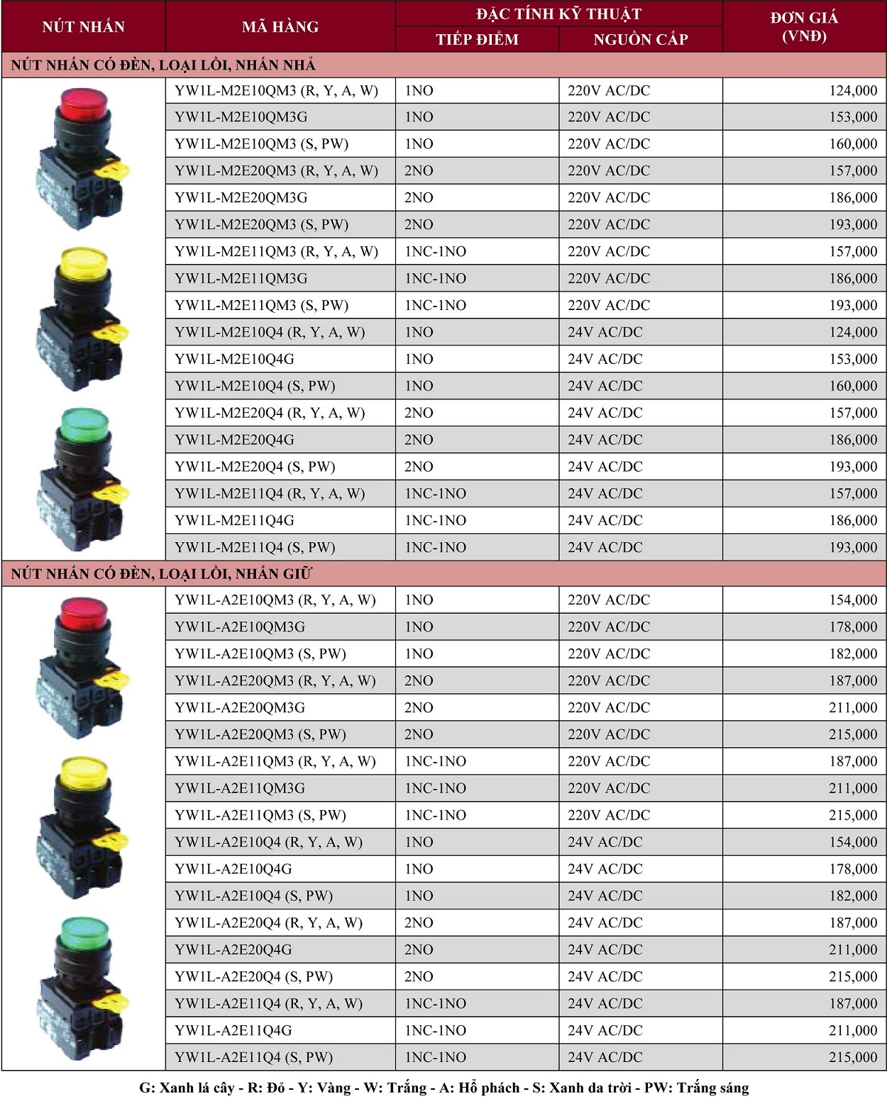 Nút nhấn có đèn YW1L-A2E10Q4G