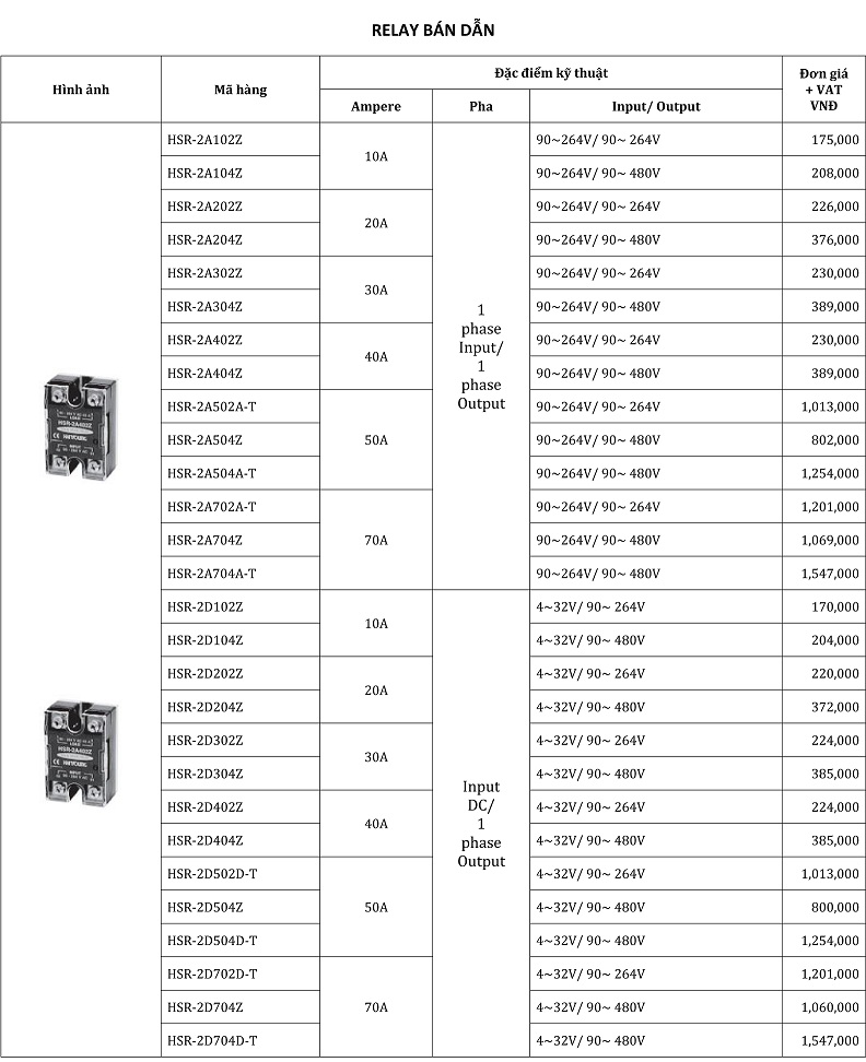 Rơ le bán dẫn vào 1 pha DC ra 1 pha: 4~32V, 90~480V